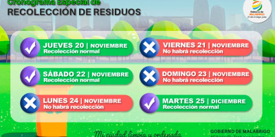 RECOLECCIÓN DE RESIDUOS DEL 20 AL 25 DE NOVIEMBRE