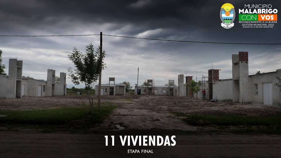La Secretaría de Obras y Servicios Públicos de la Municipalidad de Malabrigo informa que se encuentran en su etapa final las 11 viviendas del Plan 3588 donde se invertirán más de 8 millones aportados por el Gobierno de Santa Fe a través de las gestiones realizadas por el Intendente Municipal Prof. Amado Zorzón.