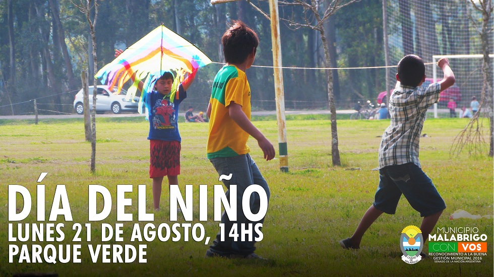 La Secretaría de Deportes, Cultura y Educación informa e invita a todos los niños, niñas, jóvenes y padres a participar de las actividades en el marco del Día del Niño que se realizarán el próximo lunes 21 de agosto a las 14hs en el Parque Verde.