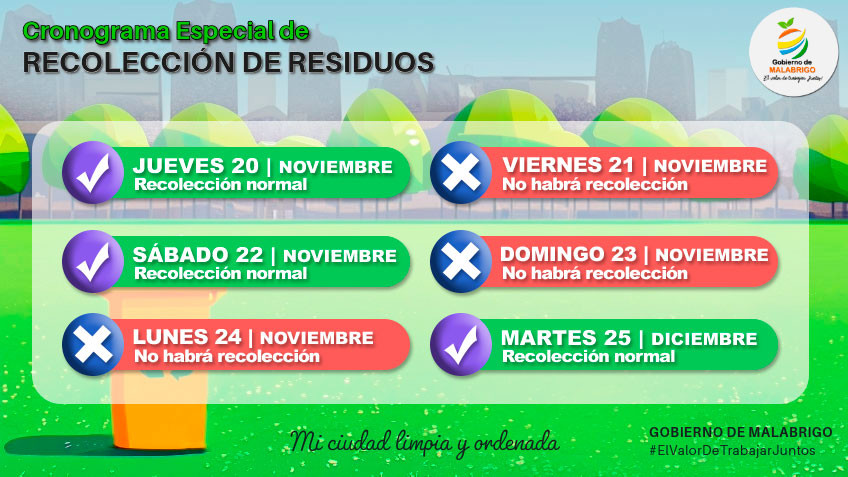 RECOLECCIÓN DE RESIDUOS DEL 20 AL 25 DE NOVIEMBRE